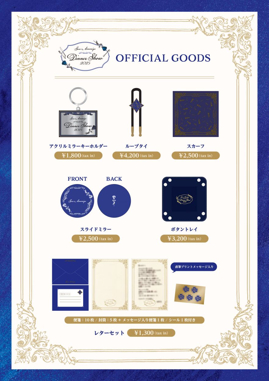 2025年11月24日(月・祝)に開催される「LAWSON presents 雨宮天ディナーショー 2025」でのグッズ販売が決定しました。